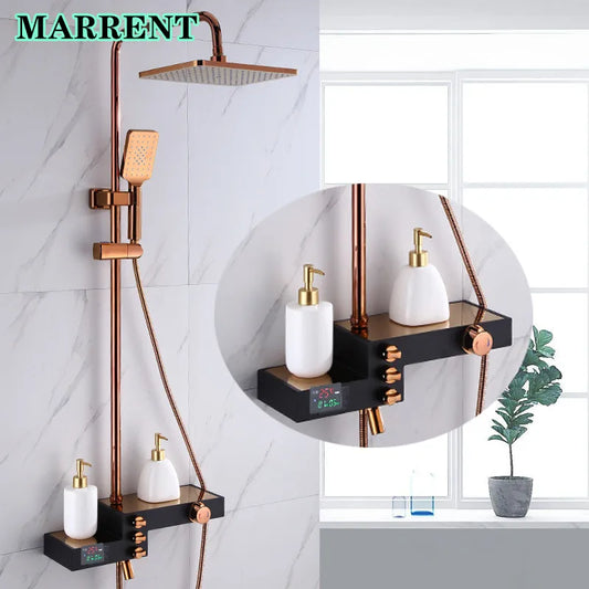 Hot Cold Digital Shower Set Rose Gold Bathroom Faucet 12 Inch Rainfall Shower Head Black Rose Gold Thermostatic Shower System