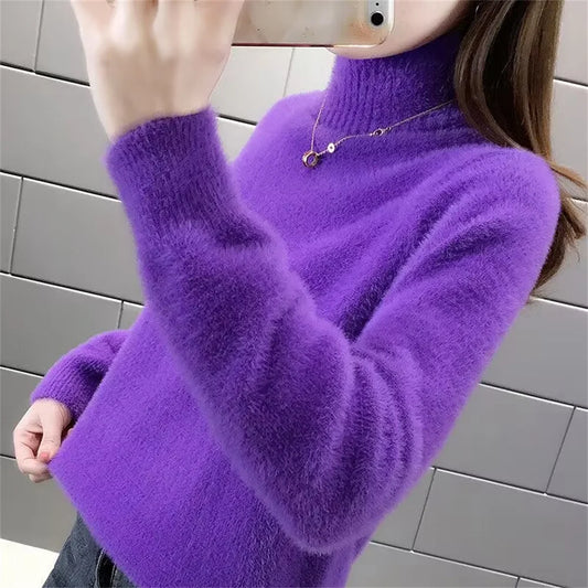 2024 Korean Fashion Autumn Winter Imitate Mink Wool Female Casual Sweater O-neck Long Solid Women Knitted Tops Elastic Pullovers