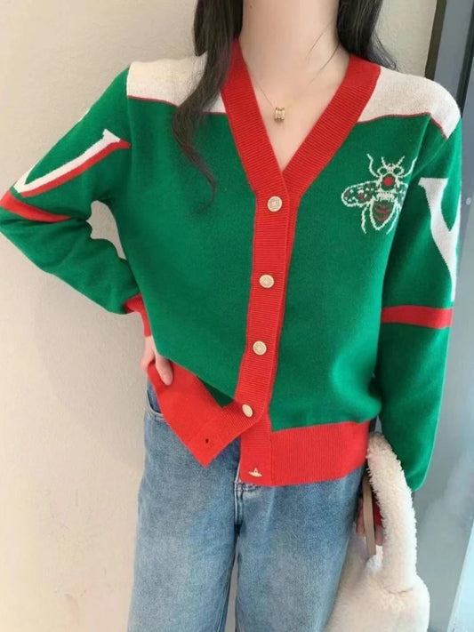Luxury Brand Design Long Sleeves V-neck Cardigan Sweater For Women Knitwears Outfits Tops Coat Y2k Vintage Outerwears Clothing