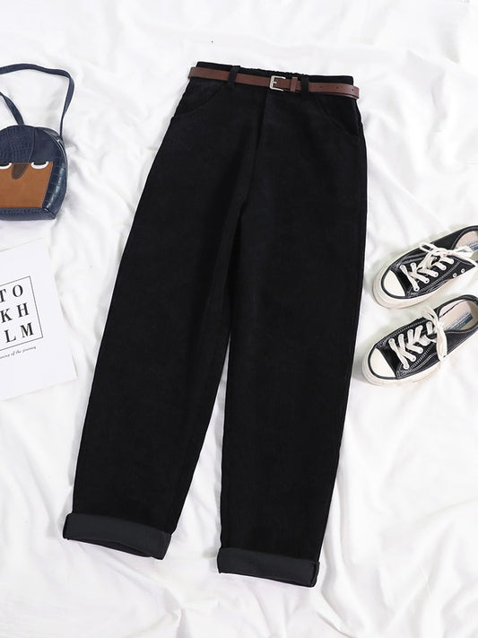 Spring Corduroy Pants -High Waist -Vintage -Wide Leg -Elegant Belt -Loose Cotton -Streetwear