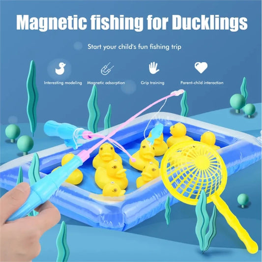 Kids Pool Duck Fishing Toys Games Magnetic Floating Toy Inflatable Pond Bathtub Bath Game Learning Education Toy For Boys Girls