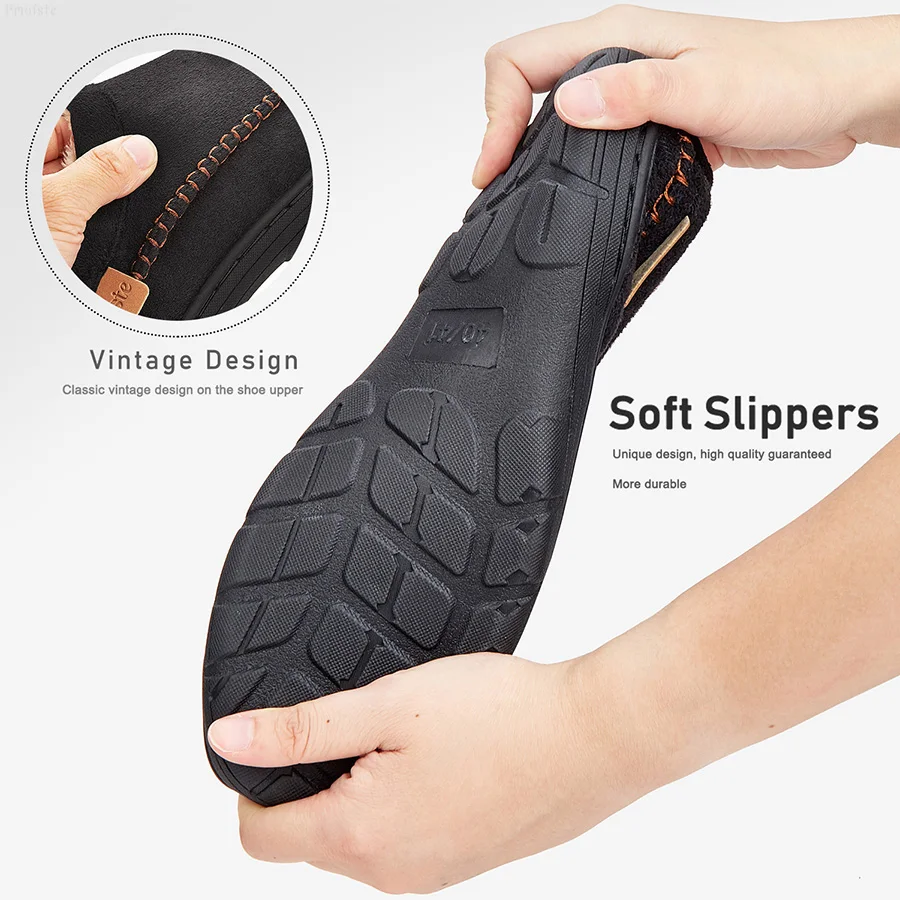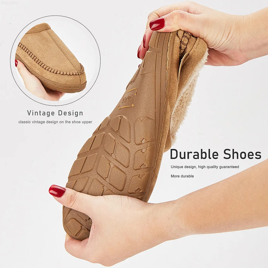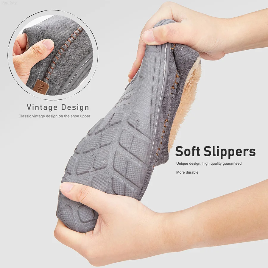 Men's Slippers Home Sewing Plush Memory Foam Warm House Shoes Male Luxury Suede Soft Non-Slip Winter Slippers For Indoor/Outdoor